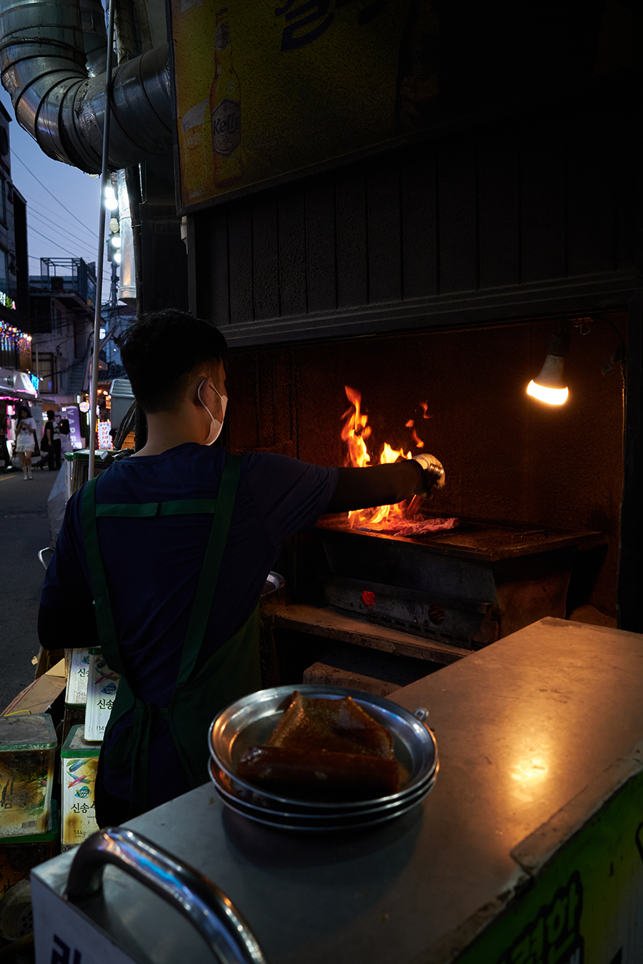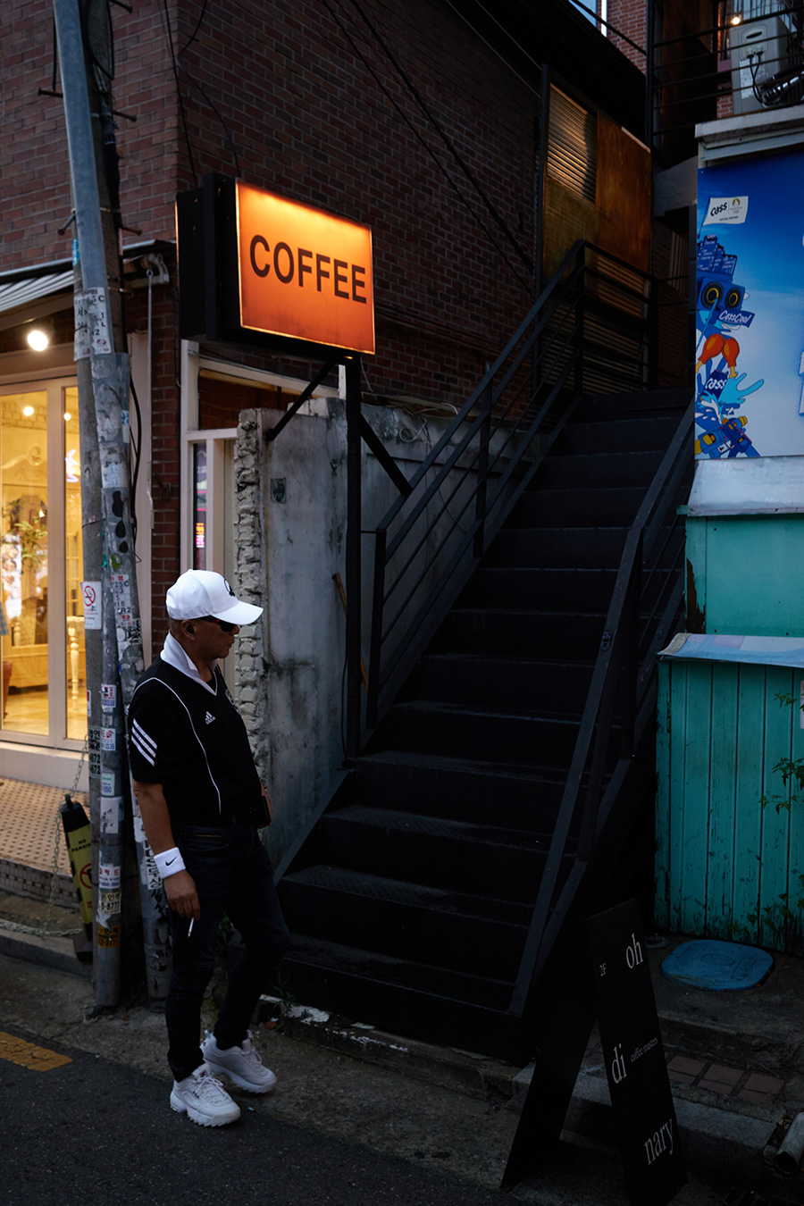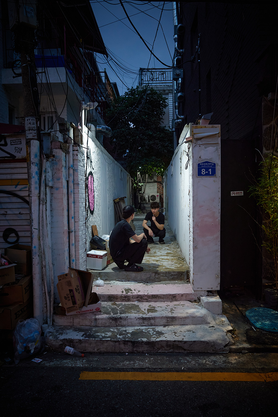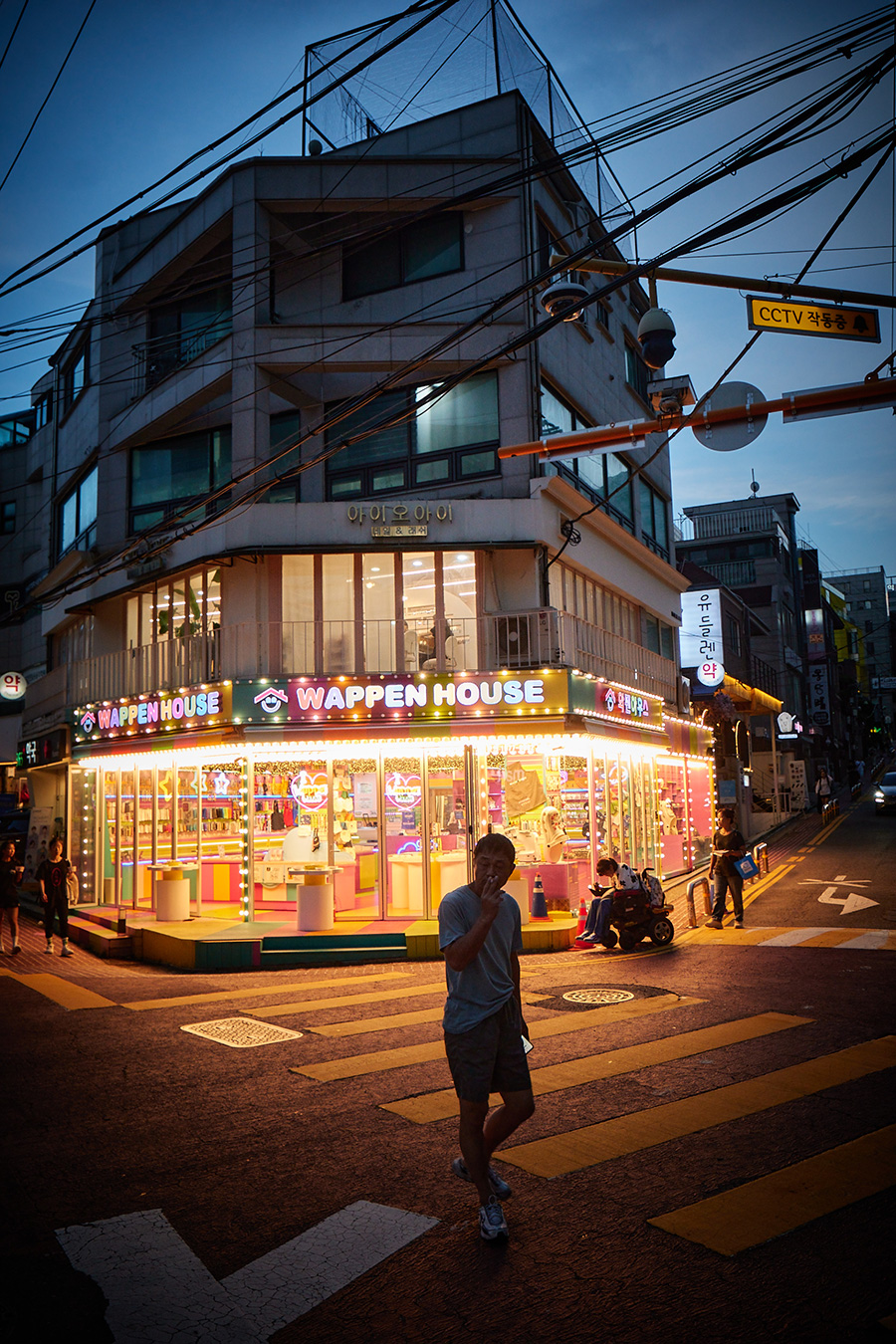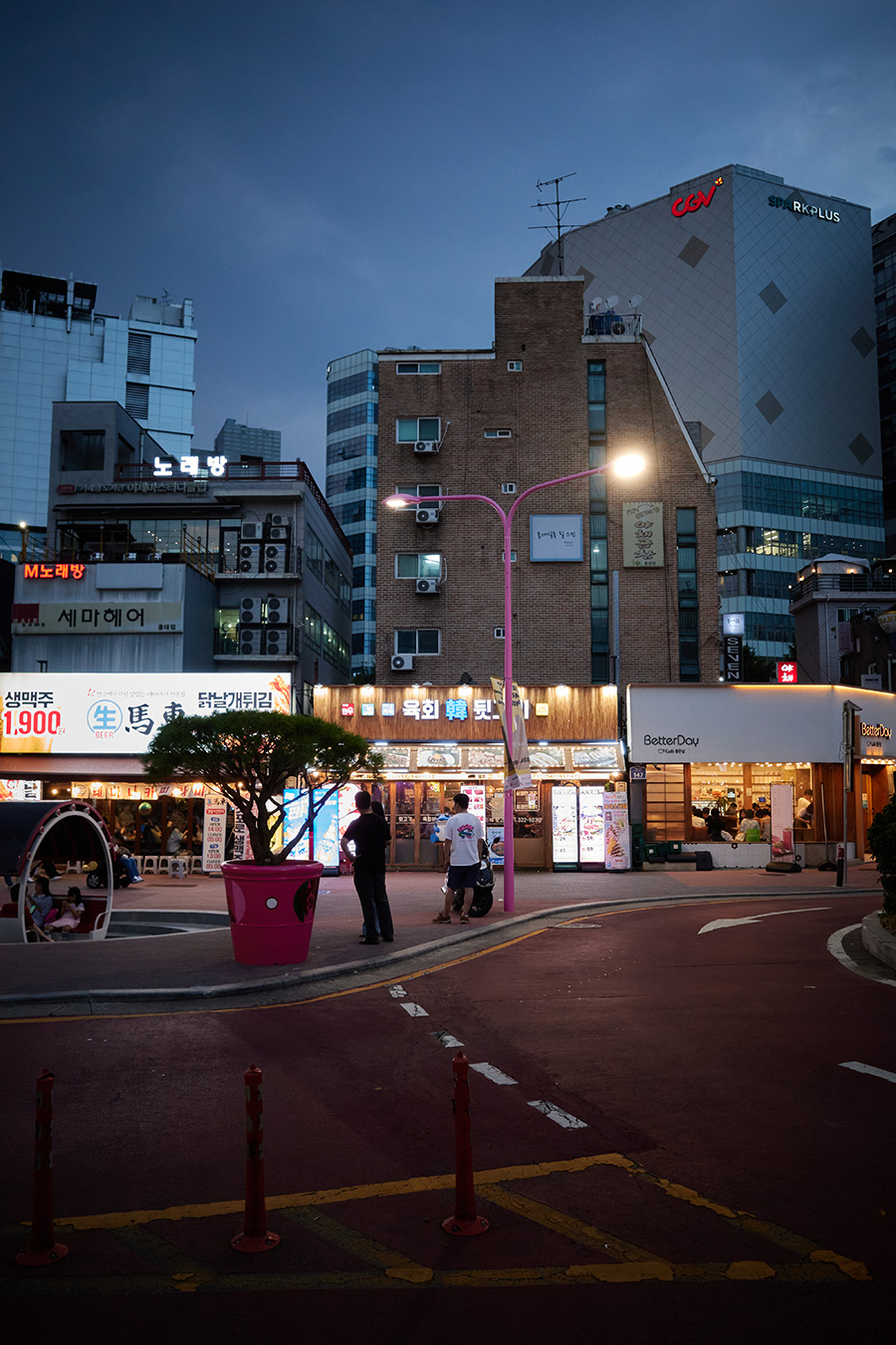 This photograph was taken in Seoul, just as the sky turned cobalt and the streets began to buzz with artificial warmth. A reminder that light, in every form and at any moment, shapes how we experience space.